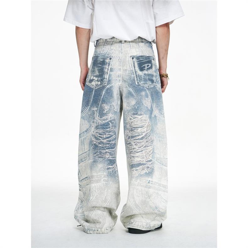 American Retro 3D Printed Patterned Machete Jeans For Men