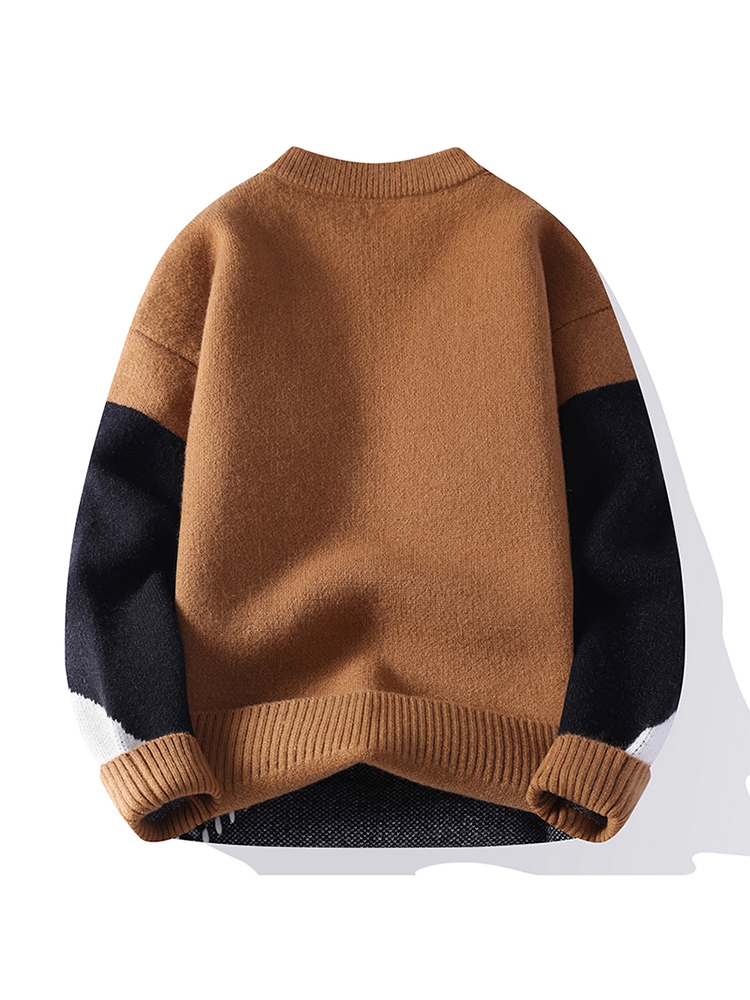 Autumn And Winter Round Neck Sweater Men's Casual Versatile Contrast Color