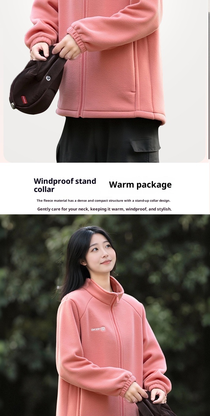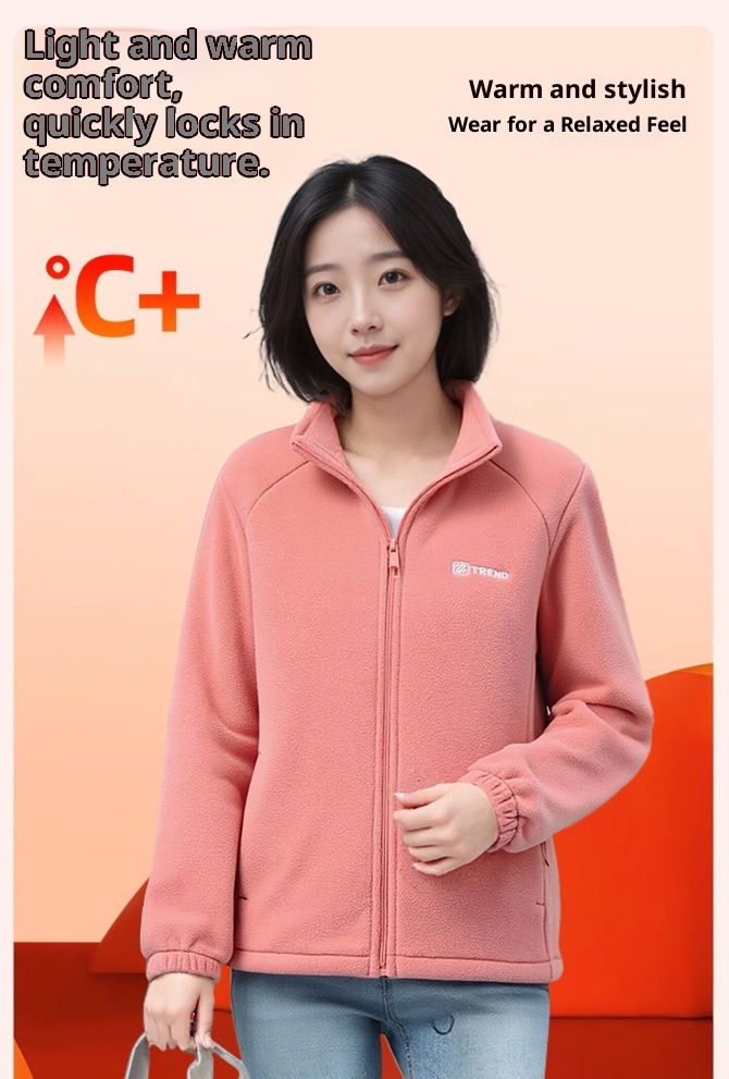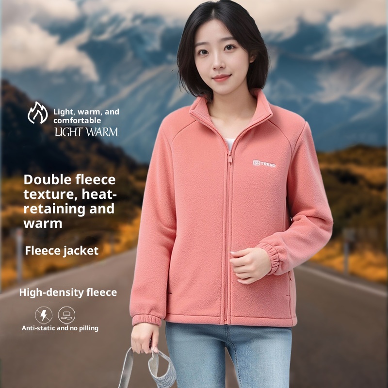 Fleece-lined Polar Fleece Jacket Warm Stand Collar Cardigan