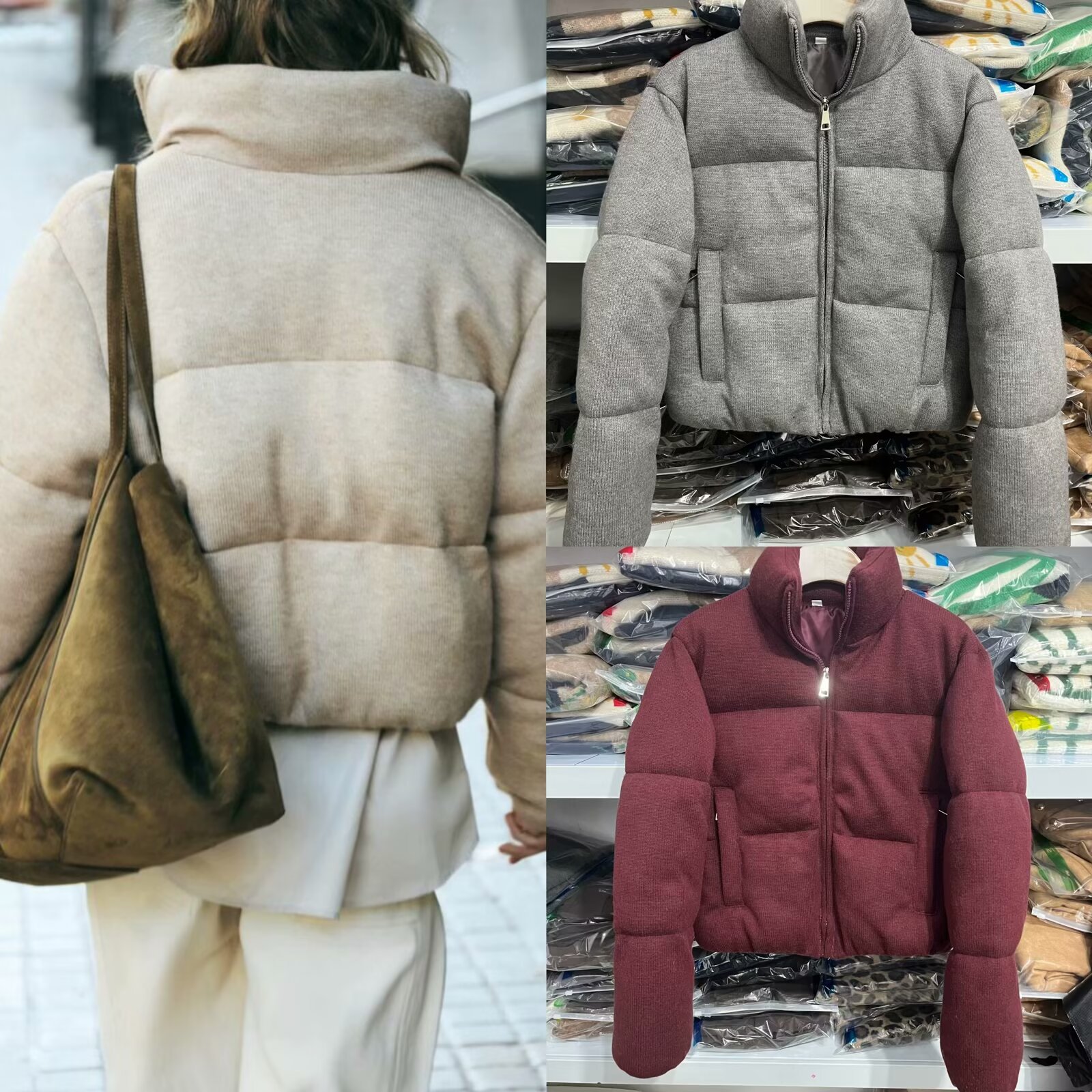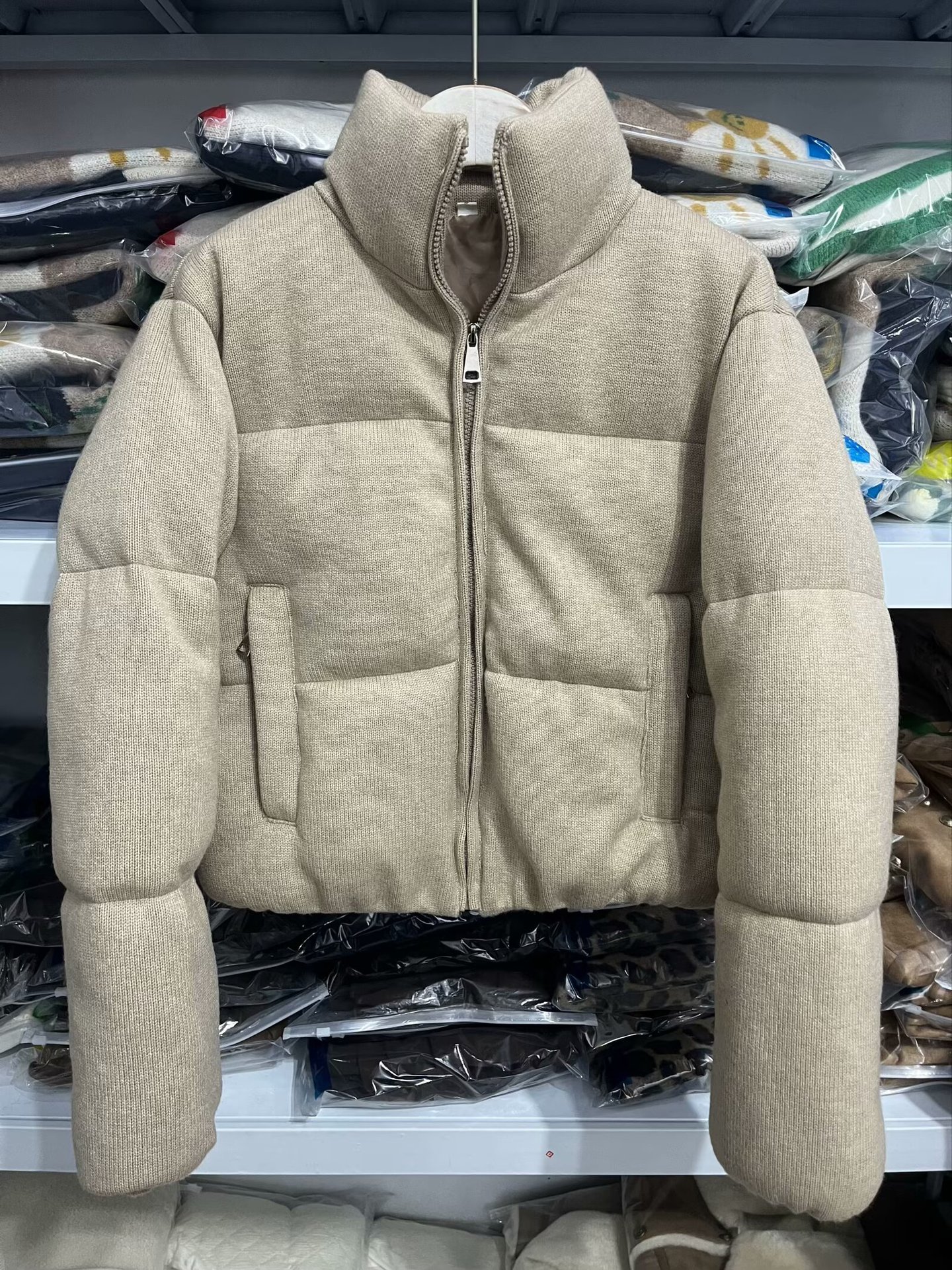 Knitted Fabric Stand-up Collar Thermal Comfortable Figure-flattering Classic Puffer Jacket