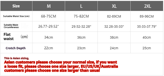Size: M (68-75CM), L (75-82CM), XL (82-89CM), XXL (89-96CM)