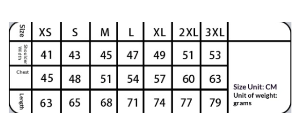 Sizes: XS, S, M, L, XL, XXL, XXXL