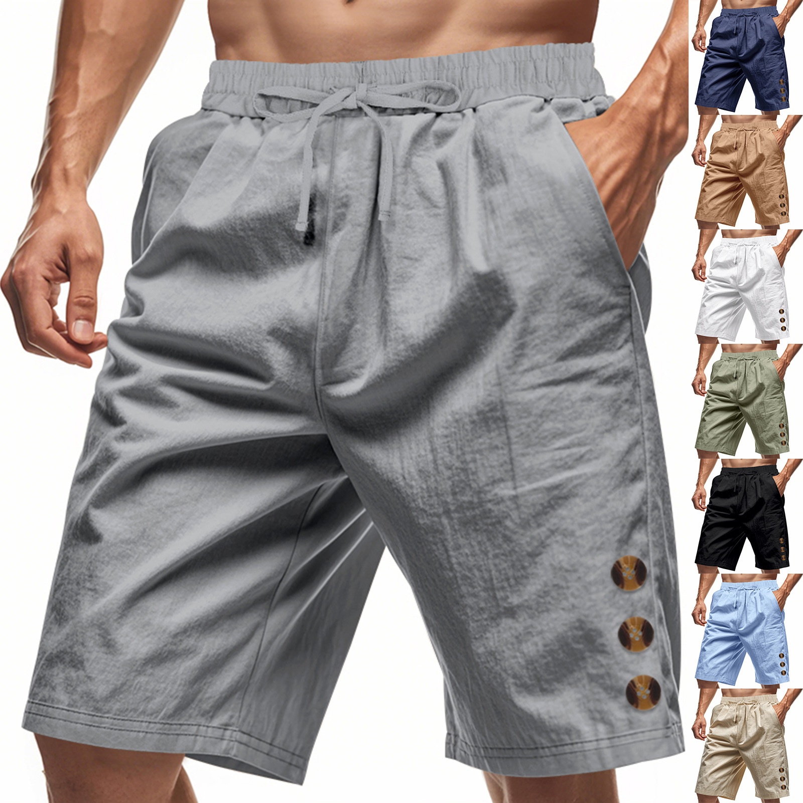 Men's Loose Linen Beach Casual Solid Color American Shorts