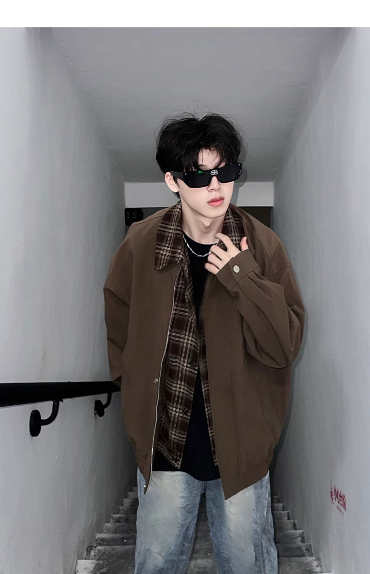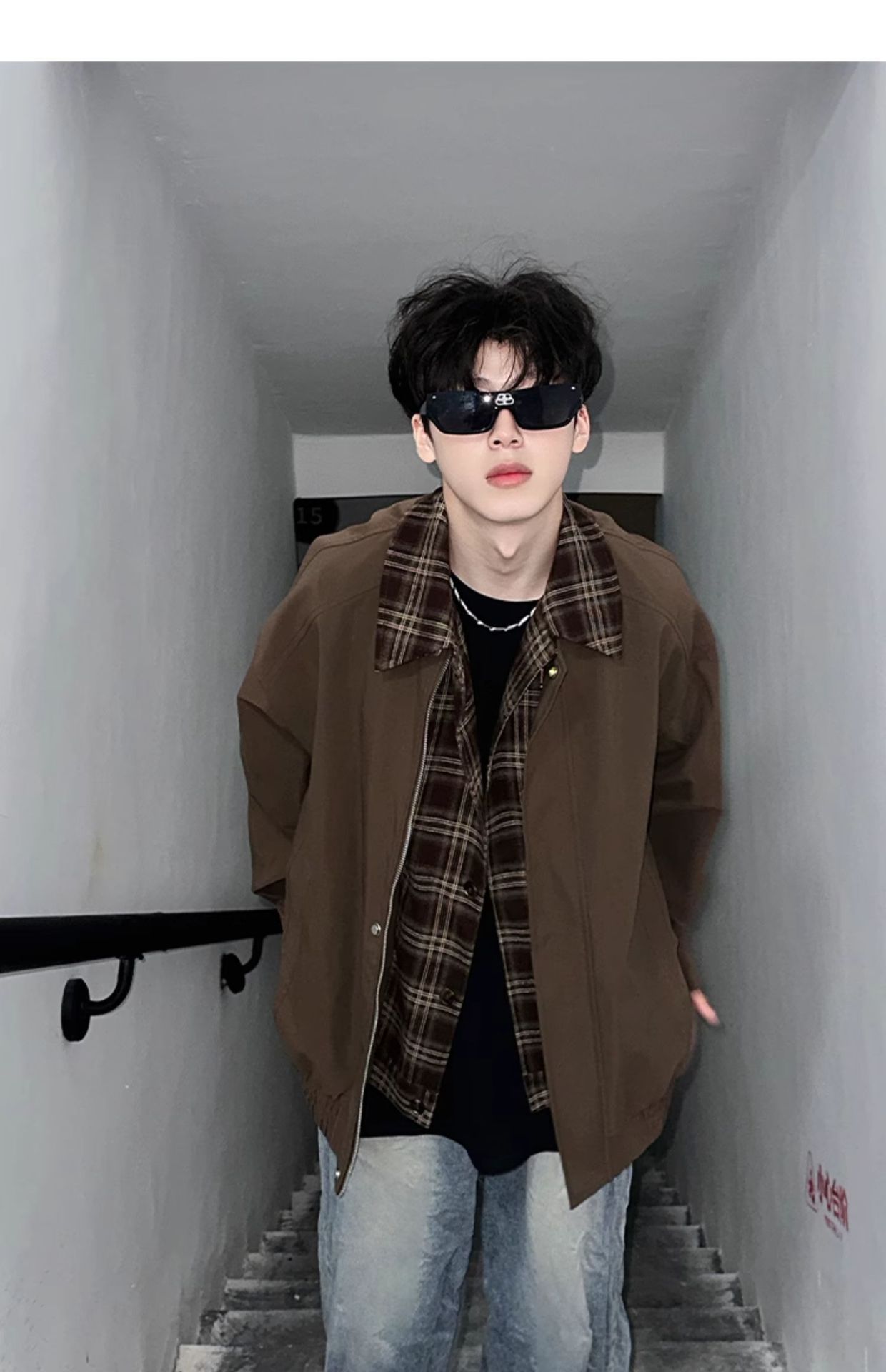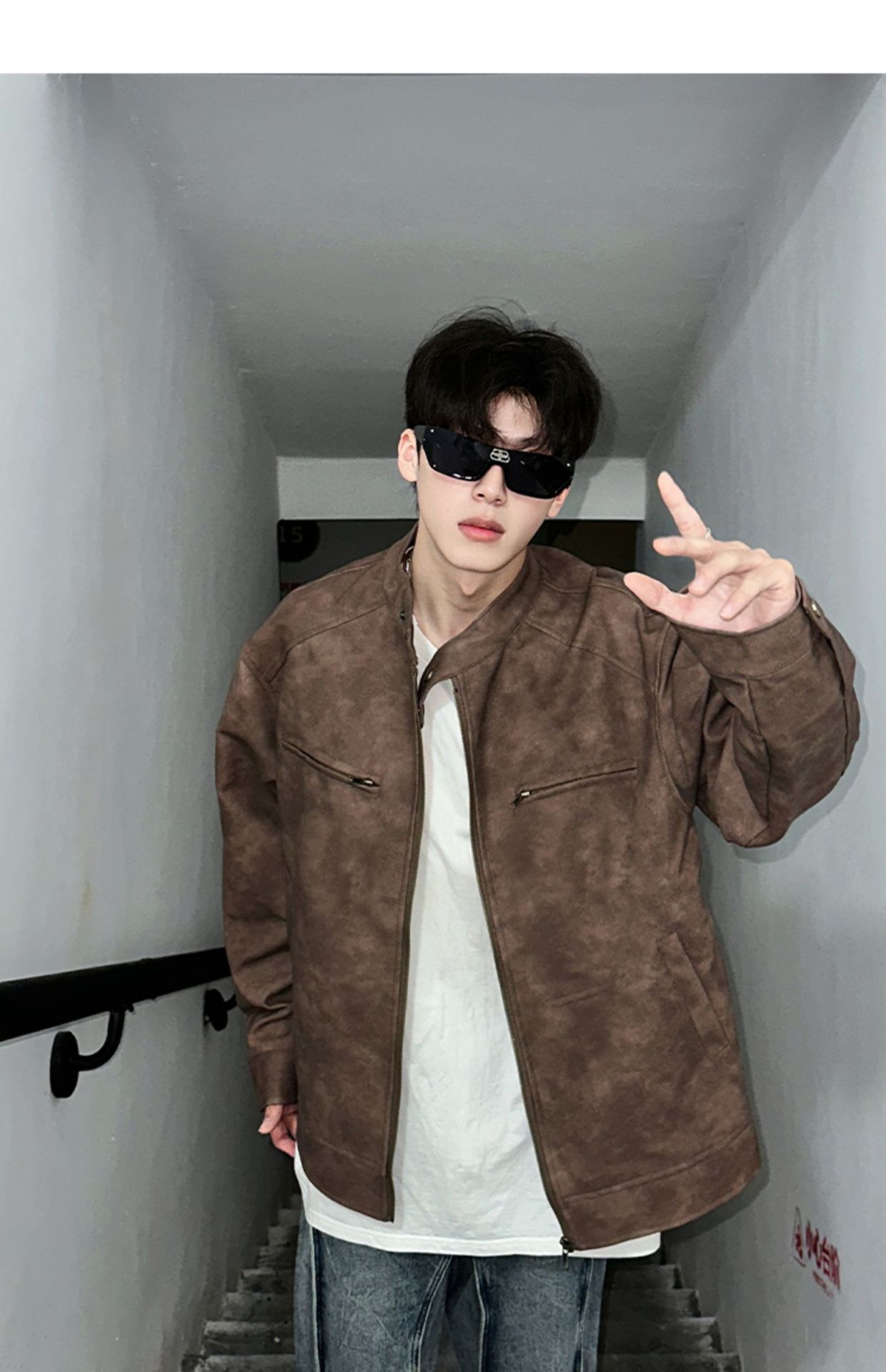 Men's Springautumn Maillard Outfit Fake Two-piece Jacket