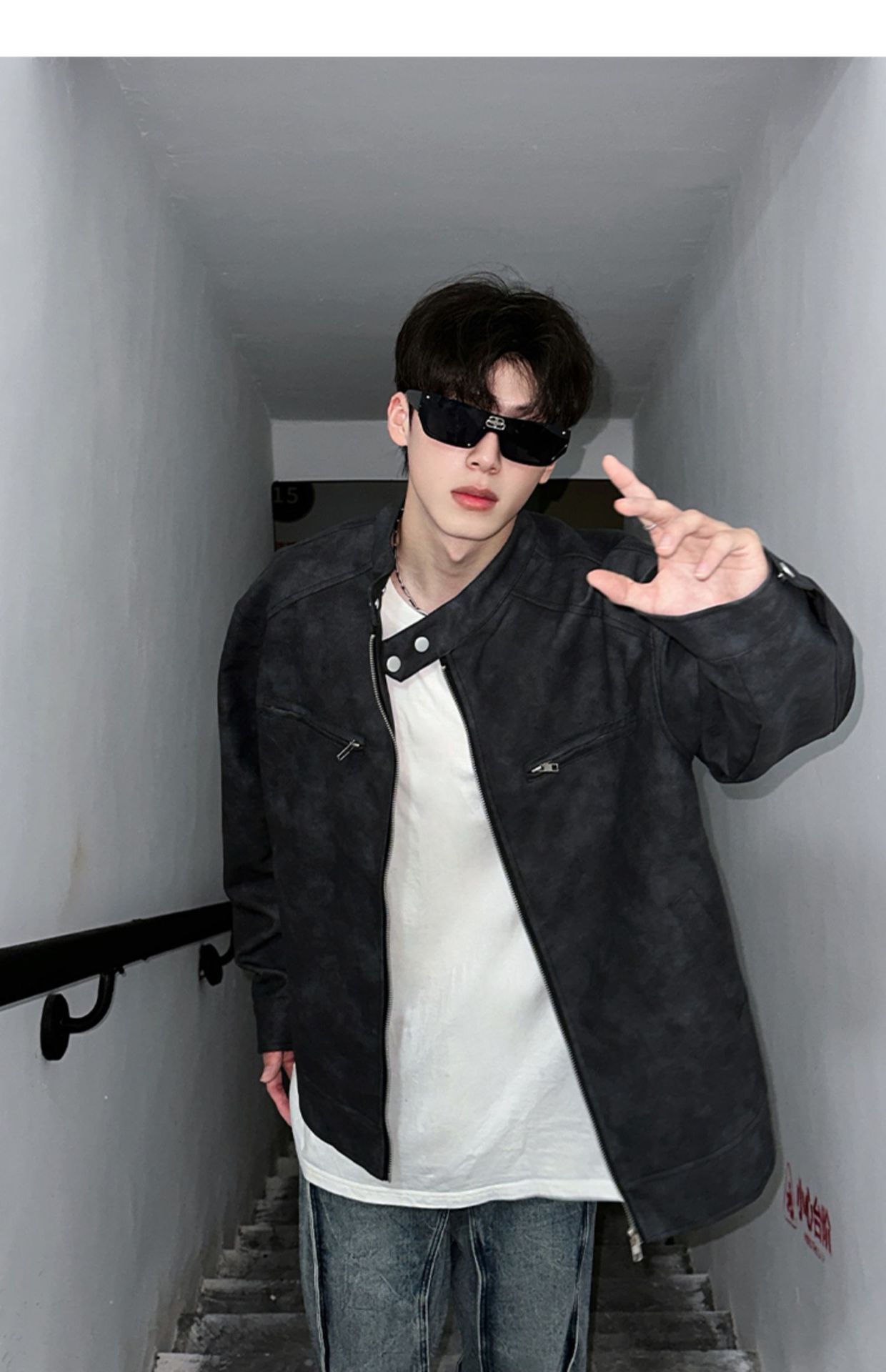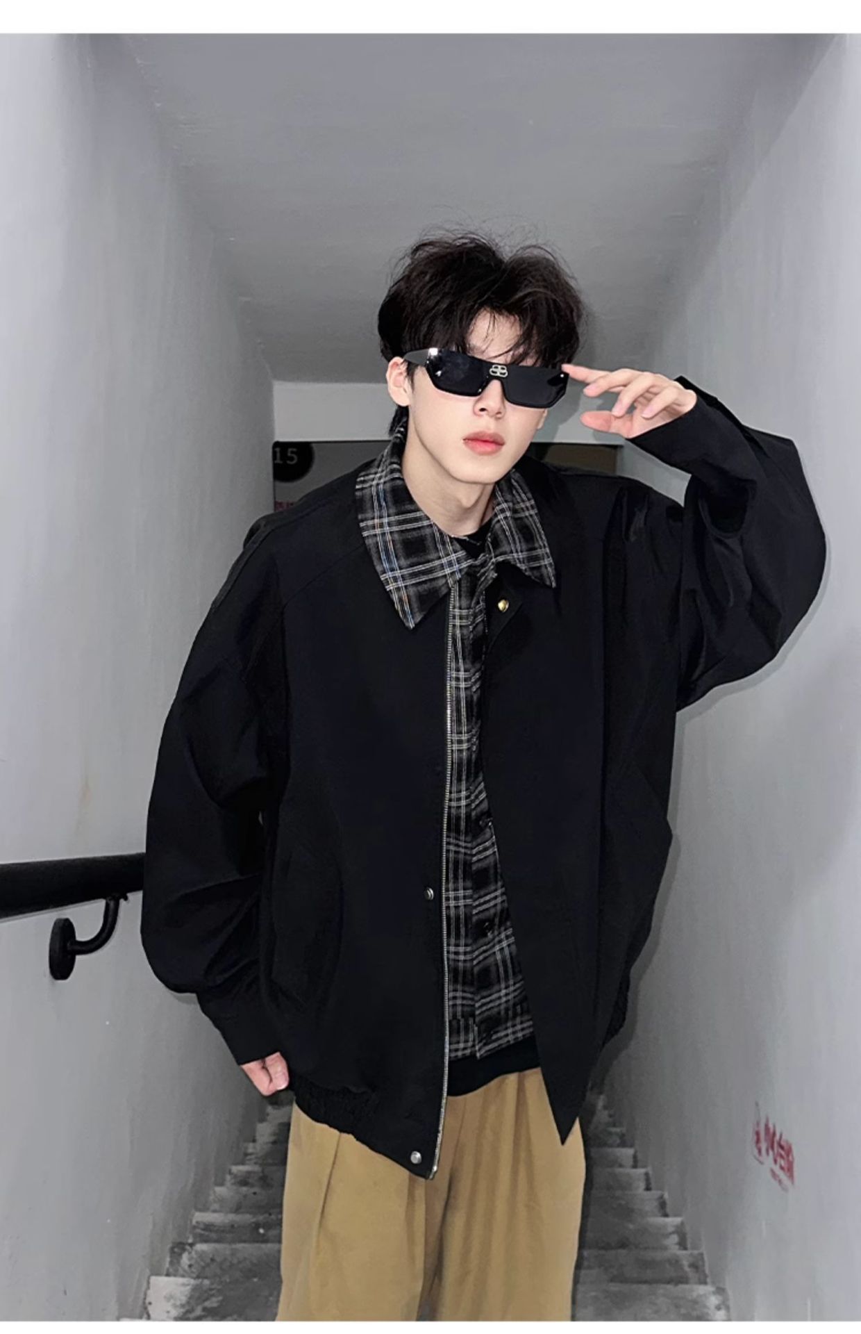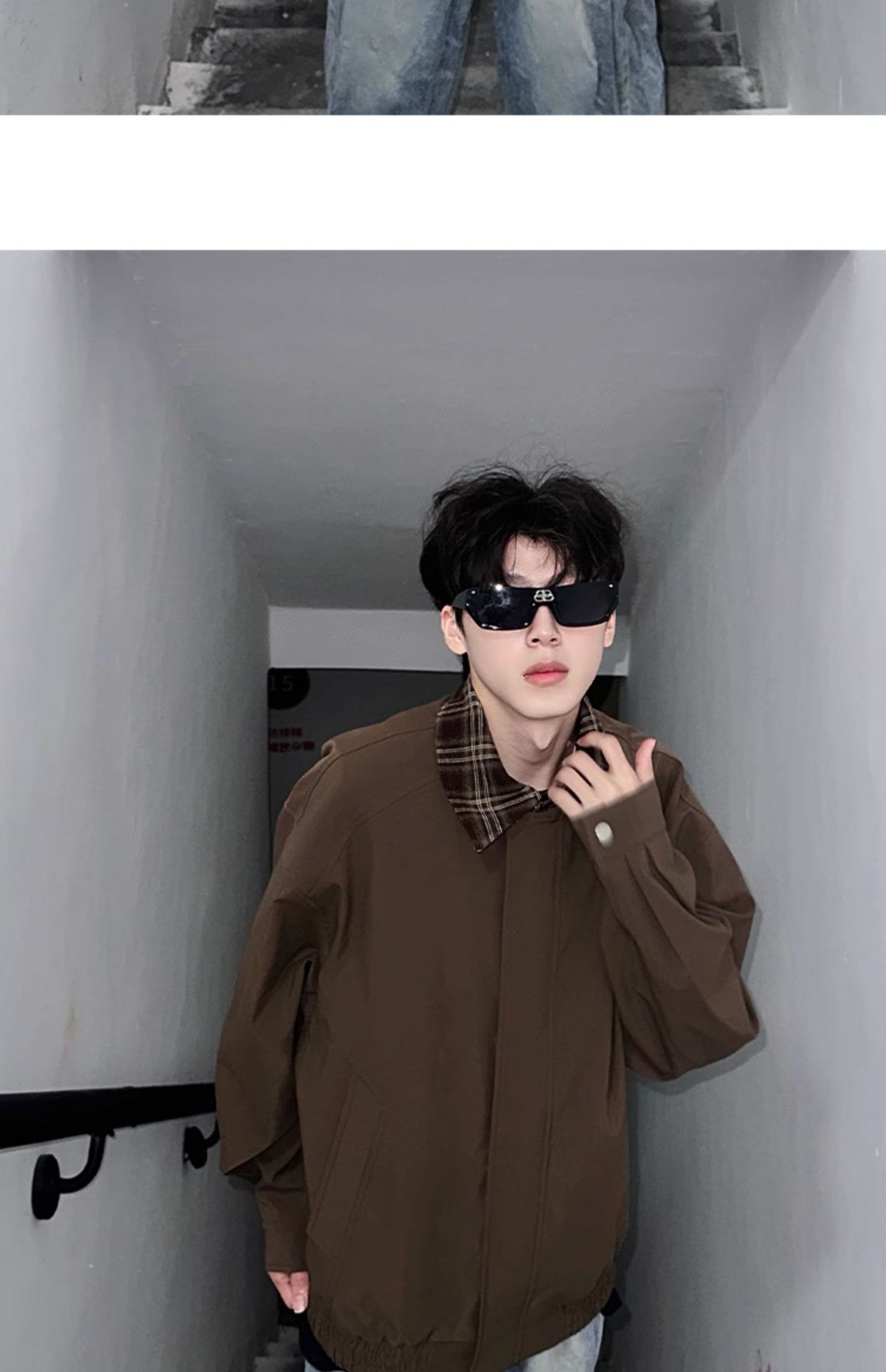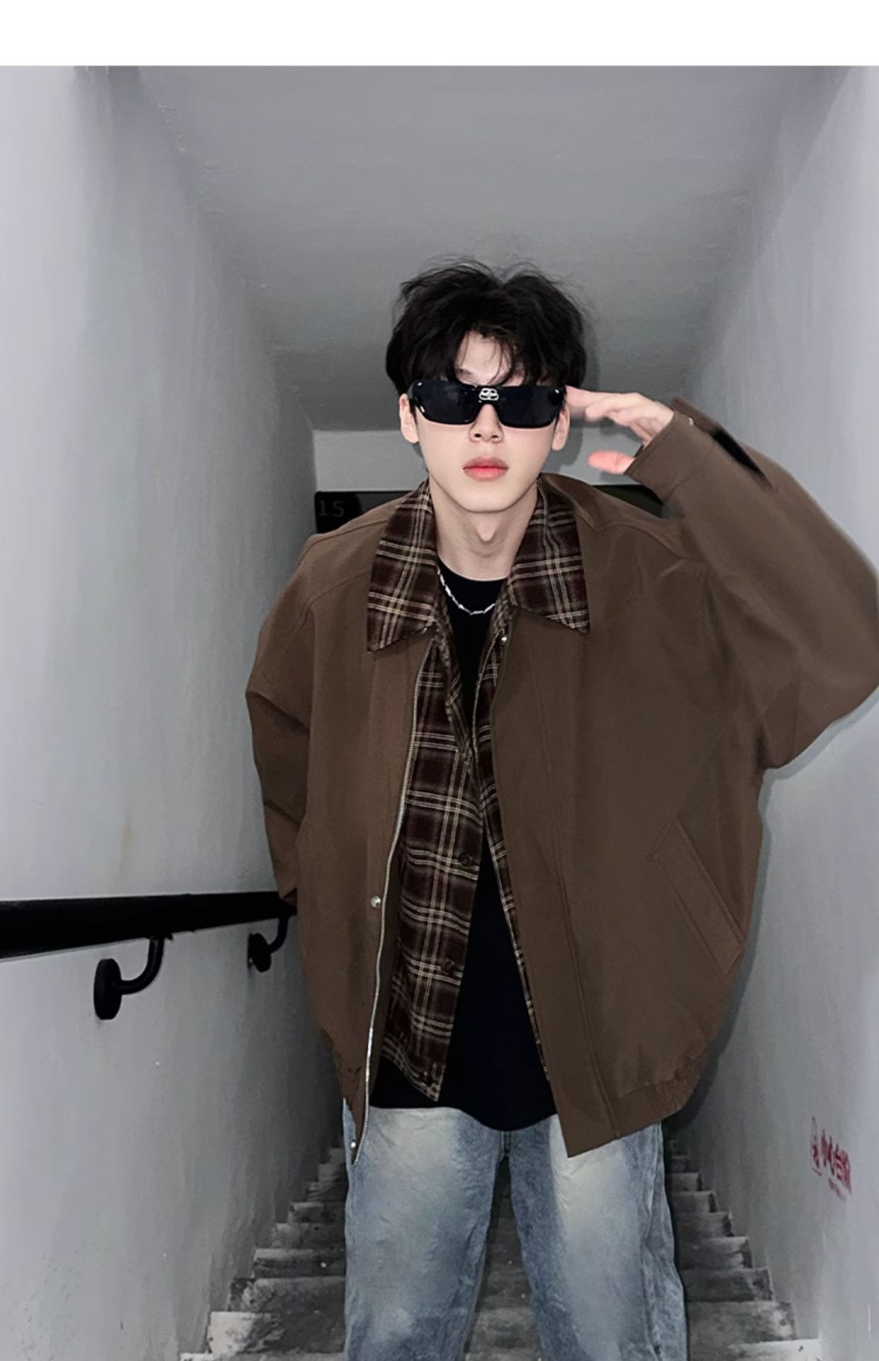 Men's Springautumn Maillard Outfit Fake Two-piece Jacket