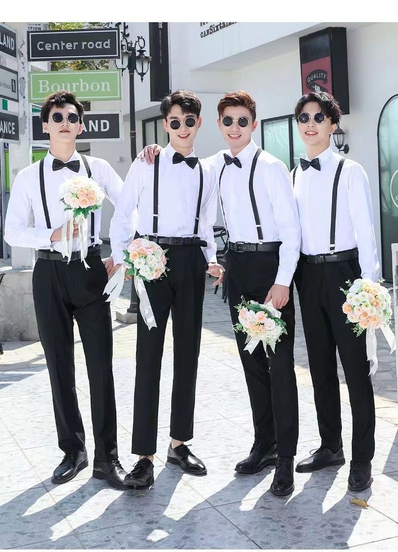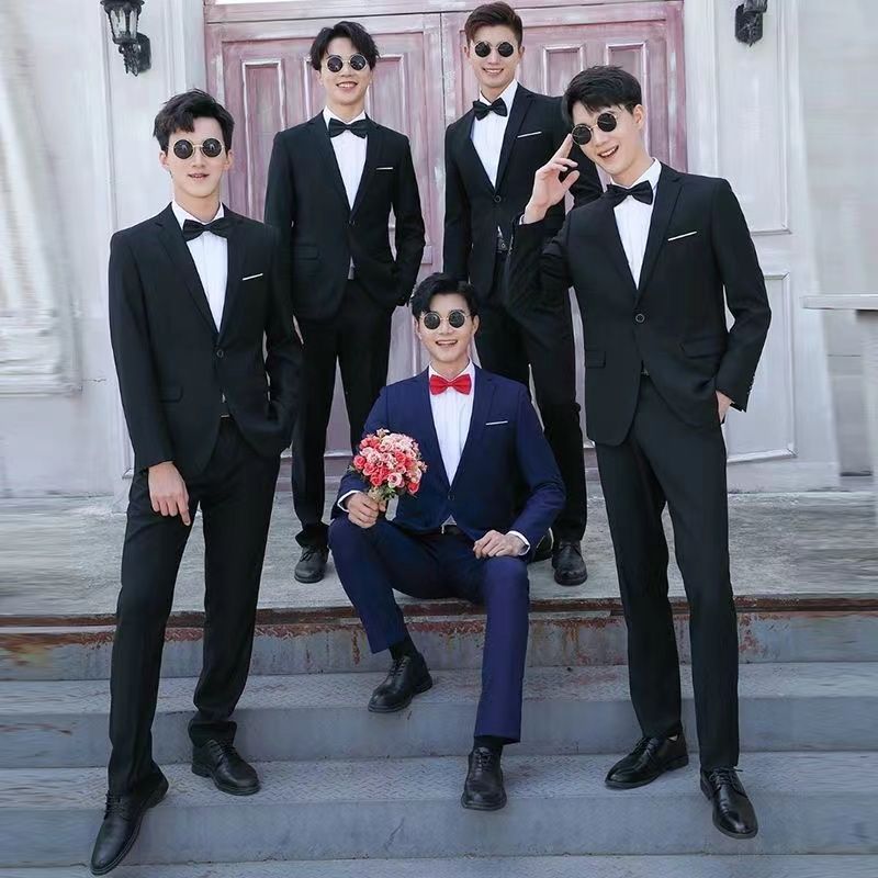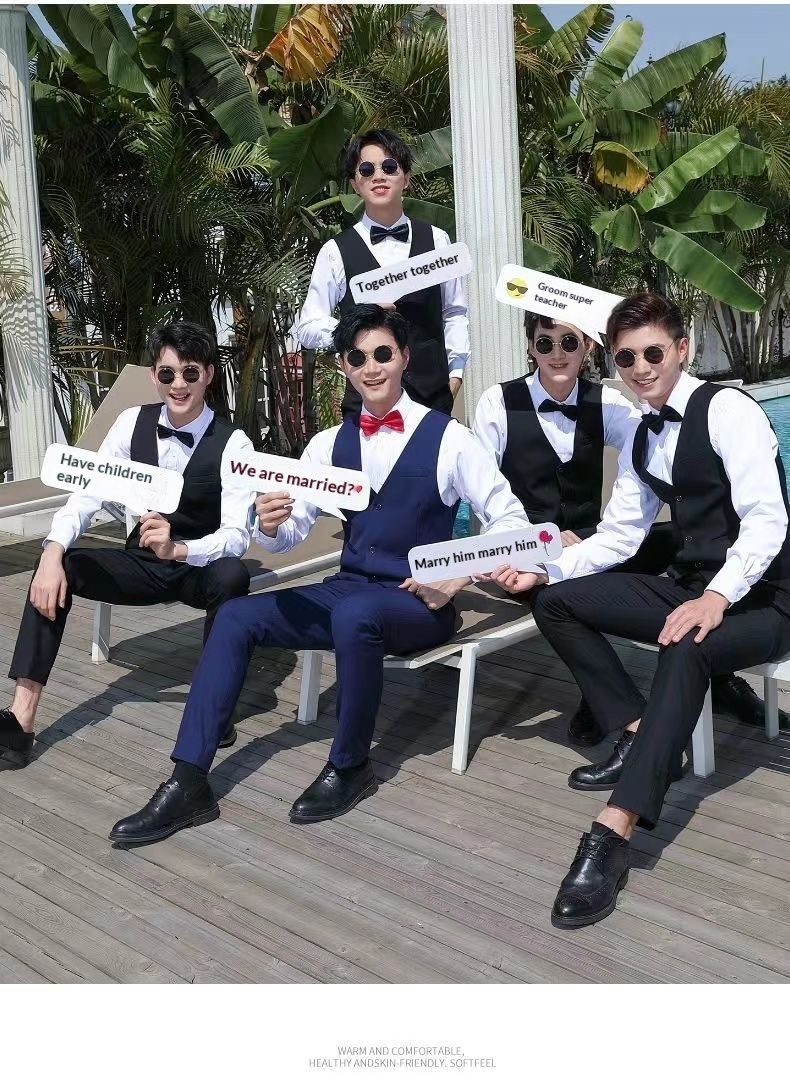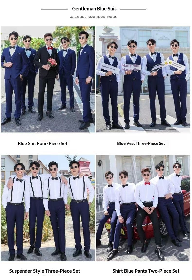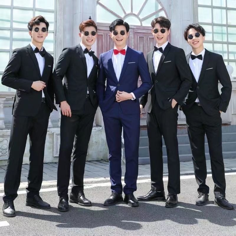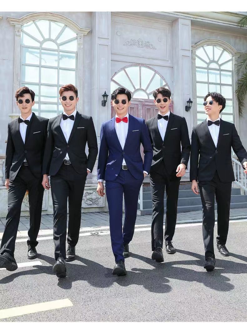Color: Black jacket pants bow tie, Navy blue jacket pants bow tie, Gray jacket pants bow tie, Black jacket vest pants bow tie, Navy blue jacket vest pants bow tie, Gray jacket vest pants bow tie, Black jacket shirt pants bow tie, Navy blue jacket shirt pants bow tie, Gray jacket shirt pants bow tie, Black jacket vest shirt pants bow tie, Gray jacket vest shirt pants bow tie, Navy blue jacket vest shirt pants bow tie, Single jacket bow tie