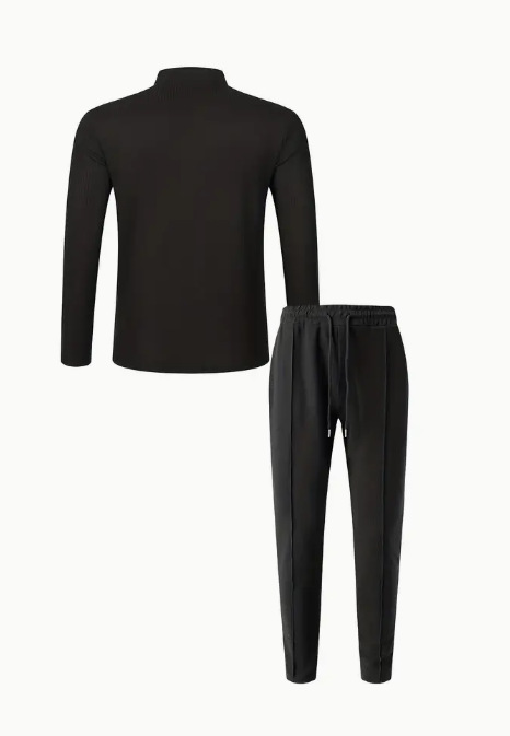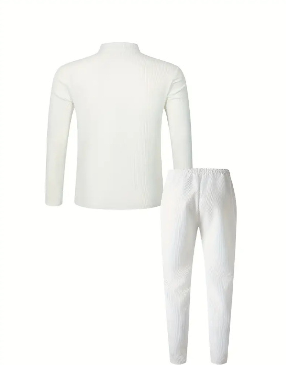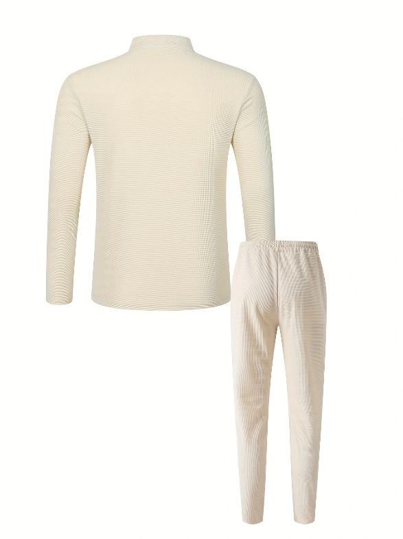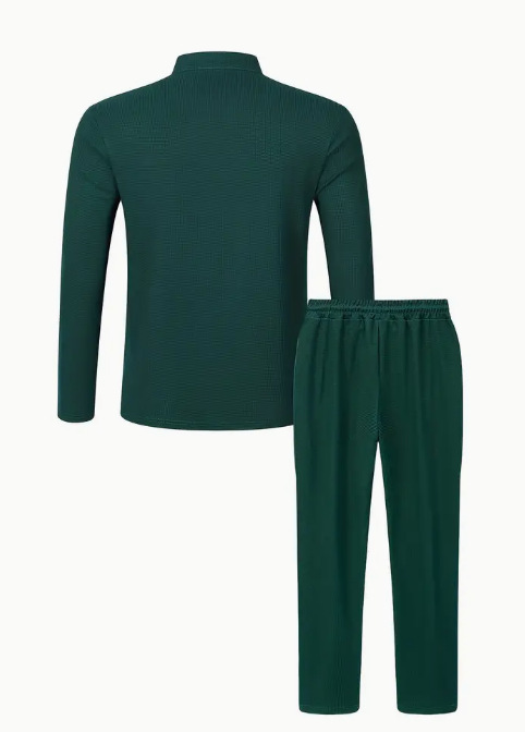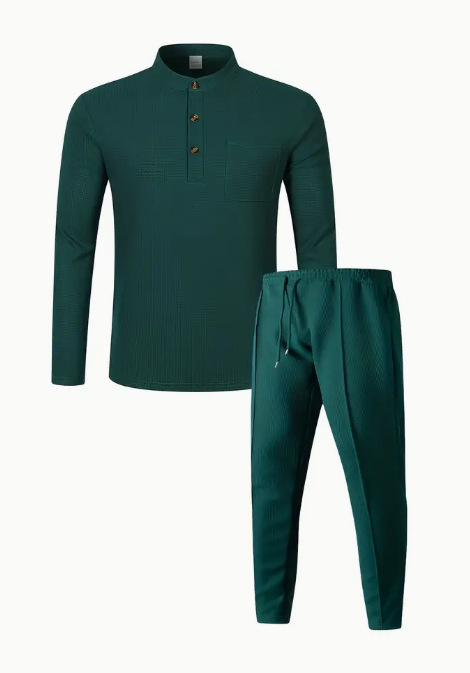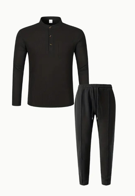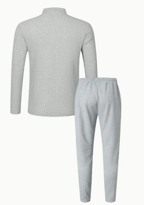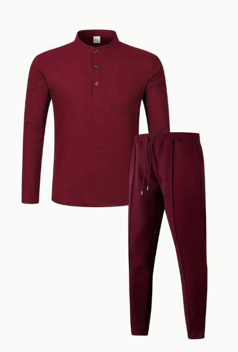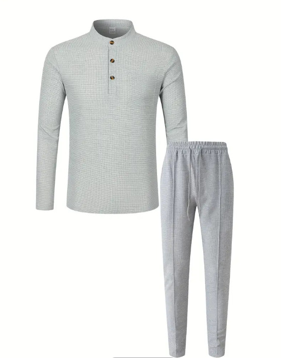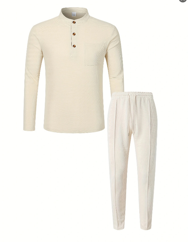 Men's Waffle Henley Neck Pants Long Sleeve T-Shirt Casual Set