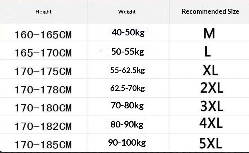 Sizes: M, L, XL, XXL, 3XL, 4XL, 5XL