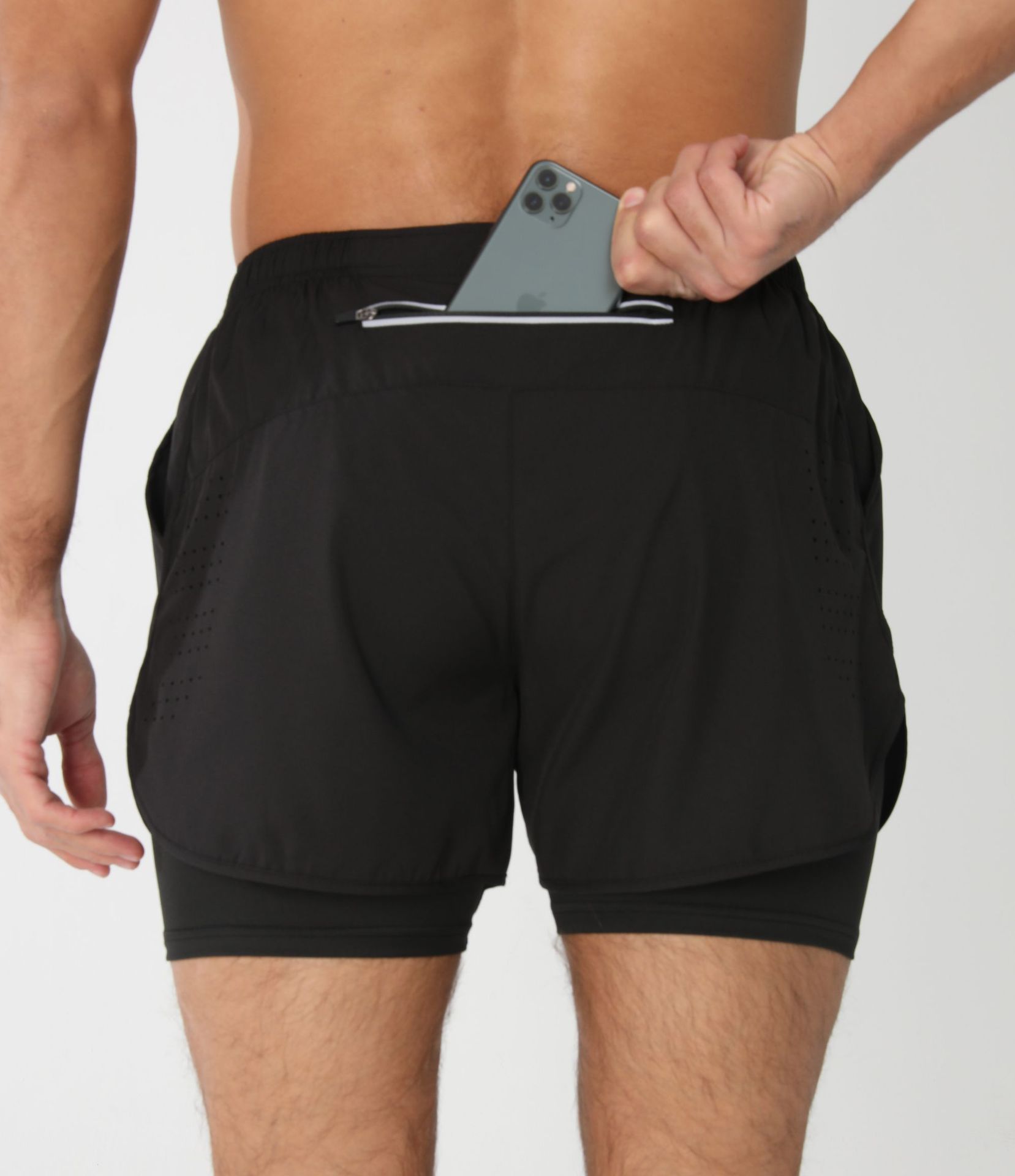 Quick-dry Lining Anti-exposure Double-layer Fitness Shorts For Men