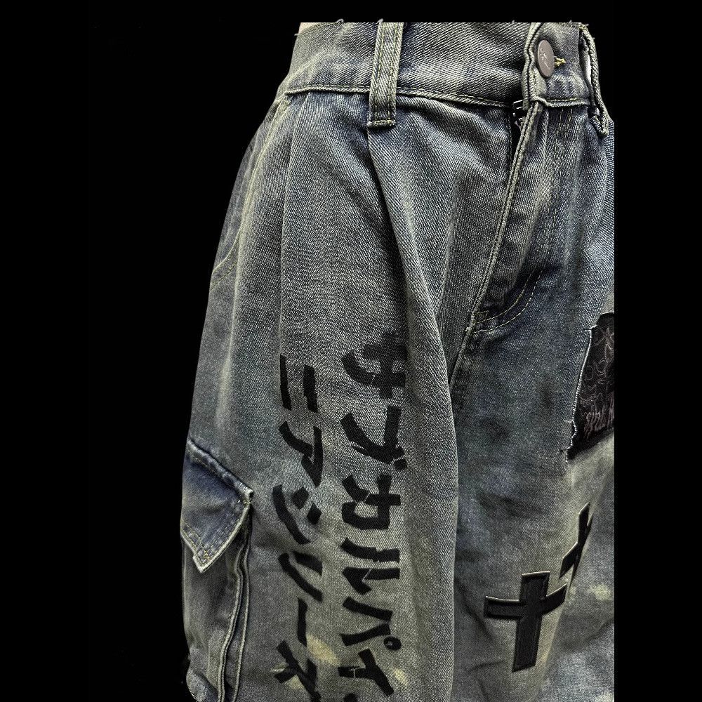 Wasteland Style Distressed Patchwork Wide-leg Pants