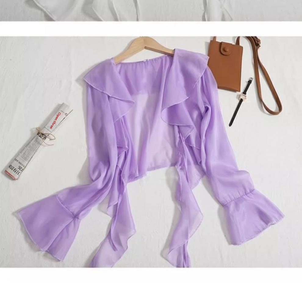 Womens Light Weight Summer Ruffled Wrap-style Shawl Or Outerwear